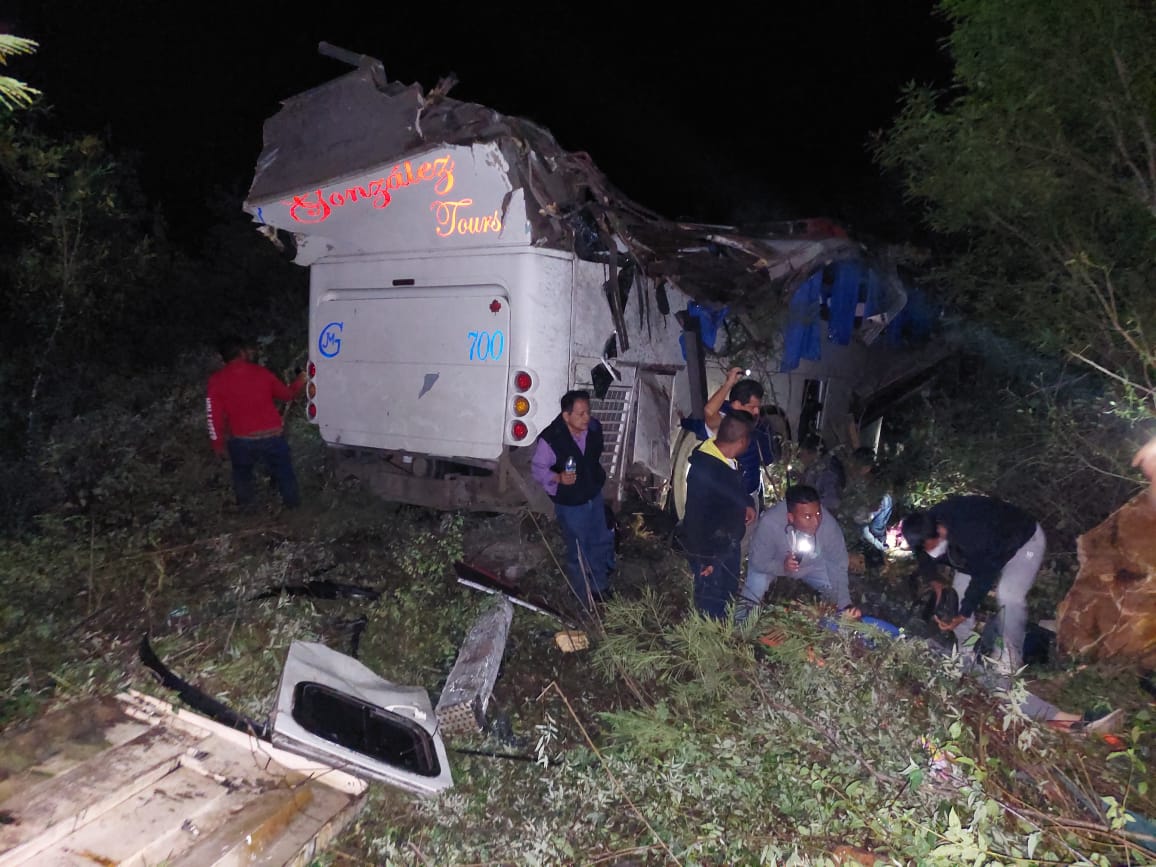 Un Autobús de pasaje "González Tours" con al menos 45 personas a bordo, cayó la noche del lunes 1 de diciembre a un barranco en el kilómetro 165 de la carretera federal Oaxaca-Tuxtepec, y el reporte de última hora habla de 43 heridos y tres personas fallecidas.